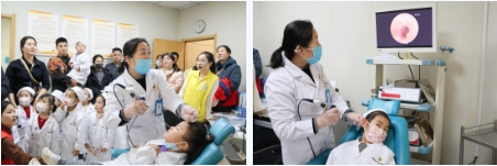 在内窥镜体验区,孩子们通过高清屏幕观察耳朵和鼻腔的内部构造,不由得发出惊叹:“哇,原来我的鼻子耳朵里面是这样的!”