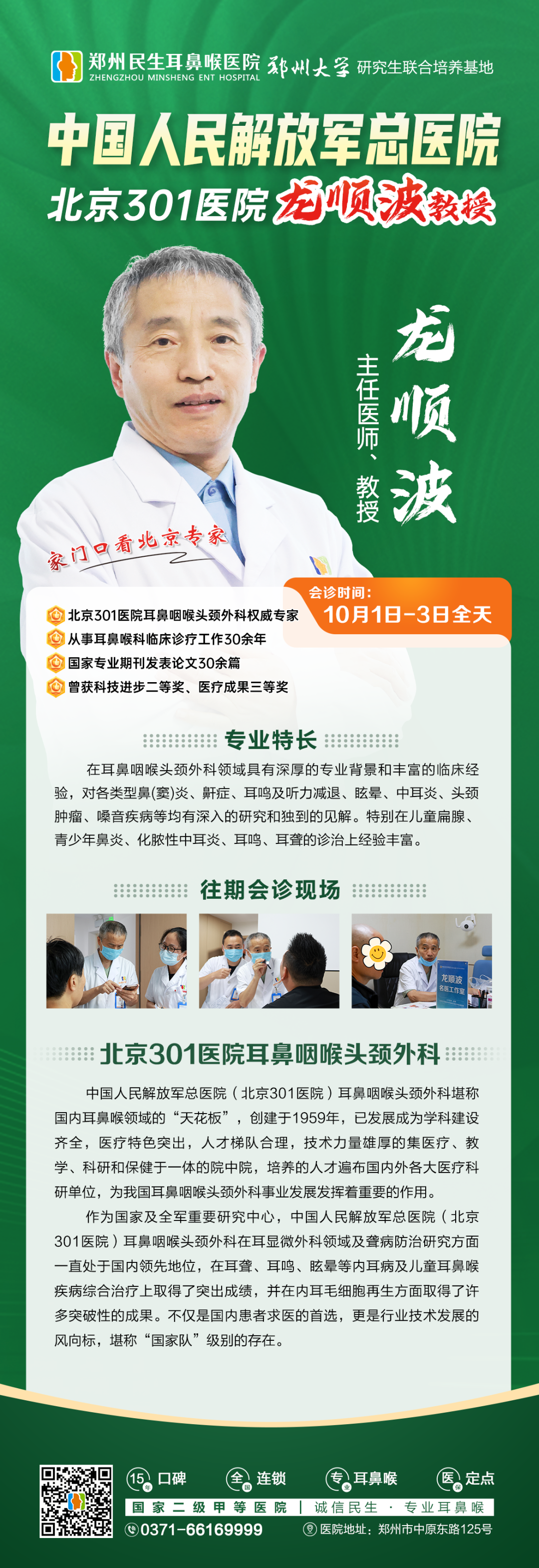 温馨提醒:10月3日(周五)是龙教授此次郑州会诊最后一天,名额有限,有需要的患者请抓紧时间预约到院。