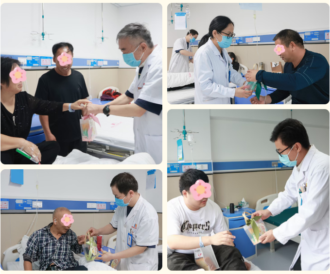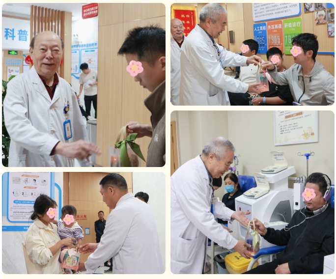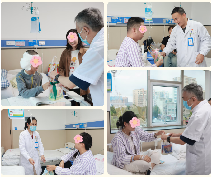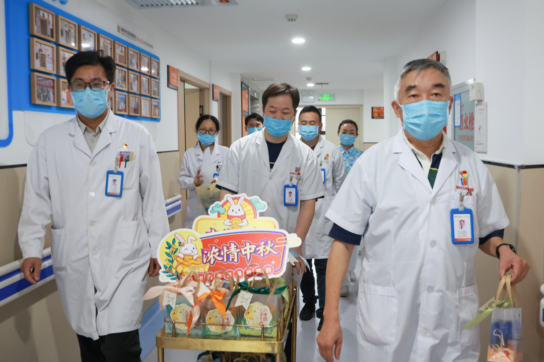 在叶真教授、权烽炬主任带领下,门诊医生也同步为就诊和治疗的患者送上月饼与祝福,让每一位患者都感受到“节日虽在医院,温暖却在心间”。
