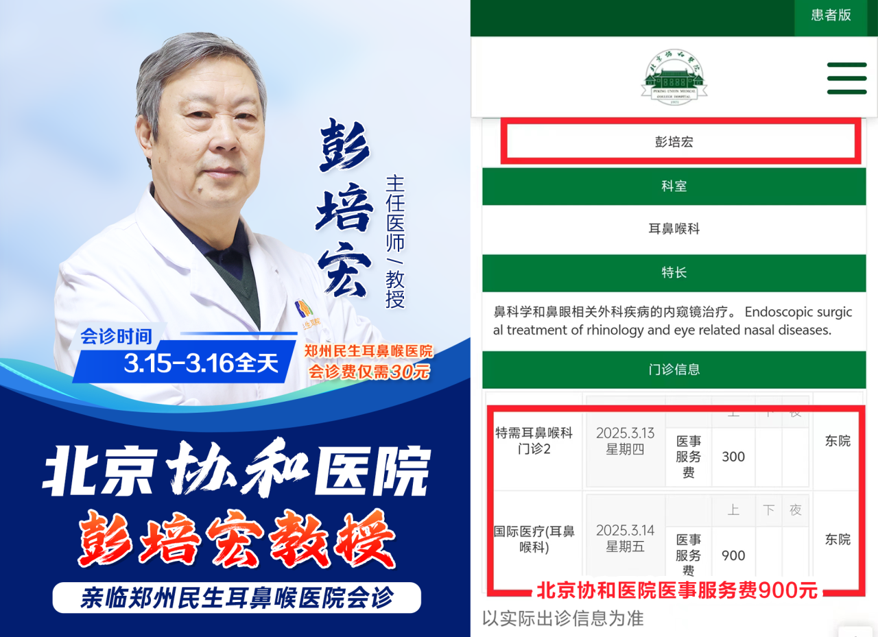 3月15-16日,北京协和医院耳鼻喉专家彭培宏教授亲临郑州民生耳鼻喉医院,为郑州及周边患者提供专业、高效的诊疗服务!